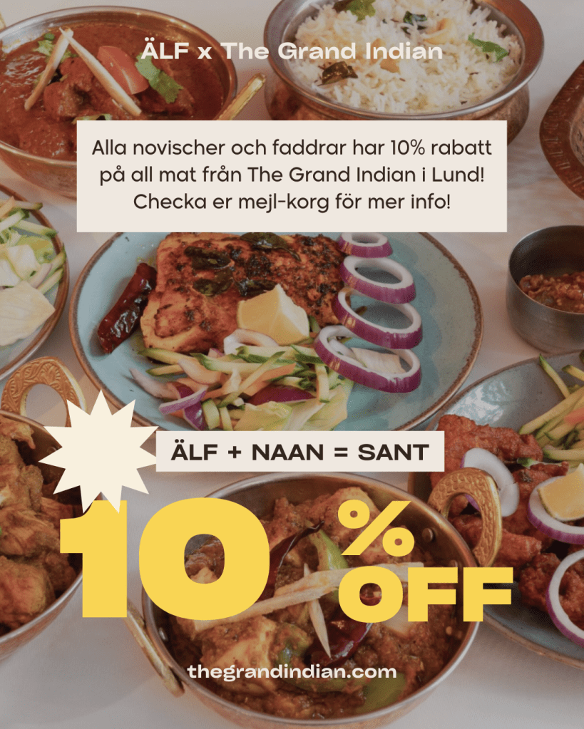 Alla novischer och faddrar har 10% rabatt på all mat från the Grand Indian i Lund!
